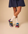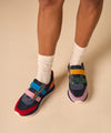 A retro inspired velcro strap sneaker with a tapered toebox, in our signature multicolors.