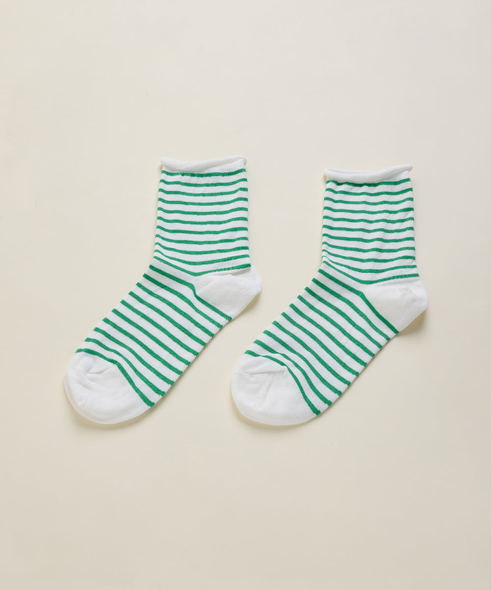 Hansel from Basel  striped crew socks wit a roll top.