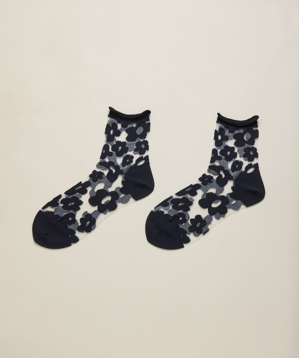 Hansel from Basel  sheer crew socks with floral motif.